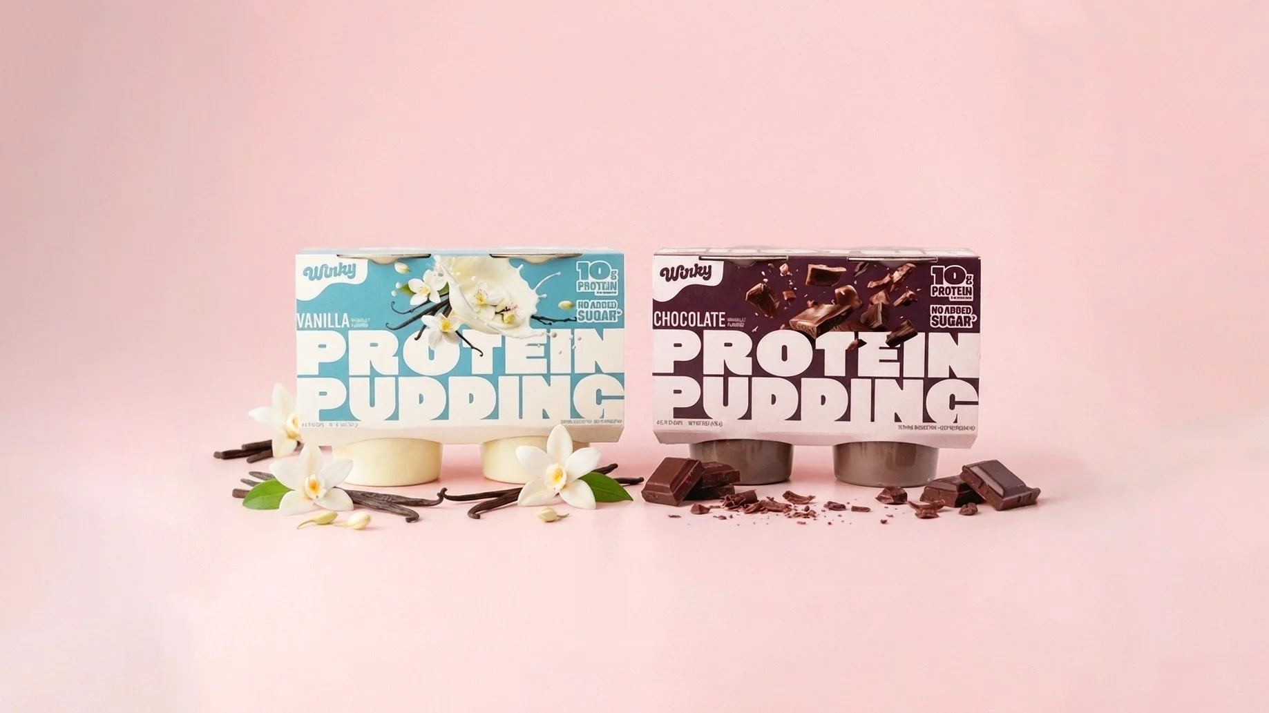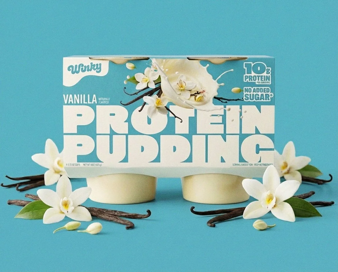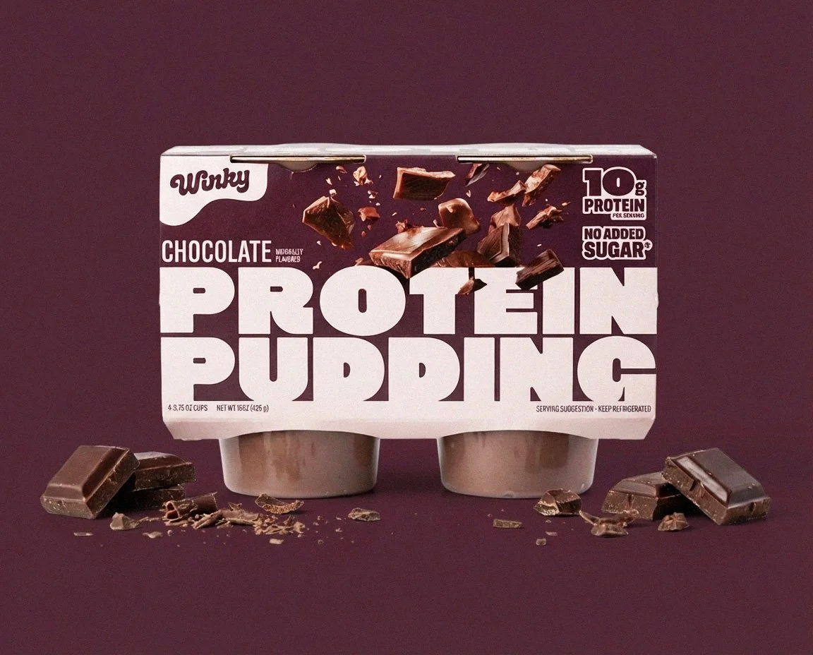 Led the packaging design and light brand refresh for Winky, repositioning the brand to a quality-driven choice through the launch of a new protein pudding line. Sourced and edited on-pack imagery to align with a flavor-forward direction, ensuring all designs met regulatory requirements and were delivered as print-ready files.